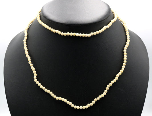 Vintage Inspired Women's Long Natural Tan (Brown + White) 4mm Round Stone 18" Necklace Boho Accent Necklace Fun 2022 Gift