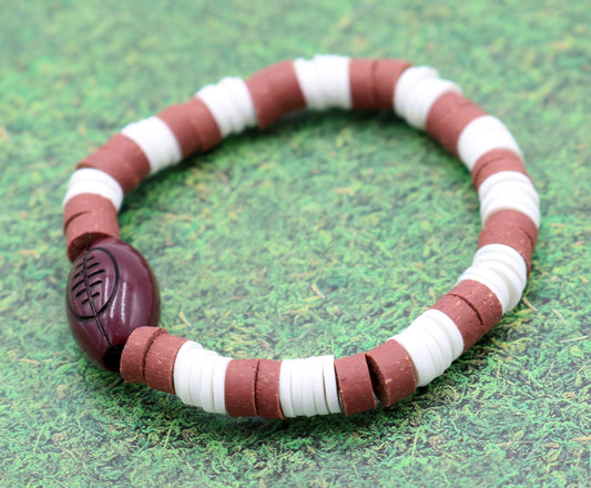 Youth Boy's American Football Themed Polymer Clay Trending Sports Themed Stretch Bracelet - Brown and White