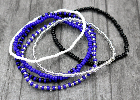 Dallas Texas Cowboys Football Fandom Inspired 6 Stretch Boho Bracelet Set – Blue, Silver, Black, White and Grey Women’s Bracelets Tail Gate