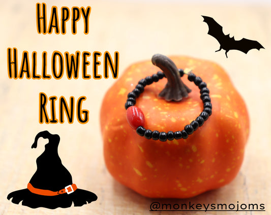 Happy Halloween Ring Classic Fun Orange and Black Stretch Glass Finger Ring by Monkey's Mojo