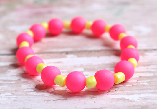Electrified Pink and Yellow - So Bright It Glows - Girl's Child Fun Stretch Bracelet