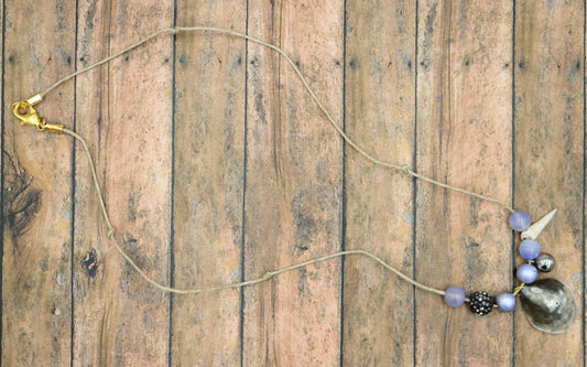Unique One of a Kind Handmade Nautical Ocean Inspired Jingle Shell Florida Twine Necklace with Glass Beads and Charm - Recycled 20"